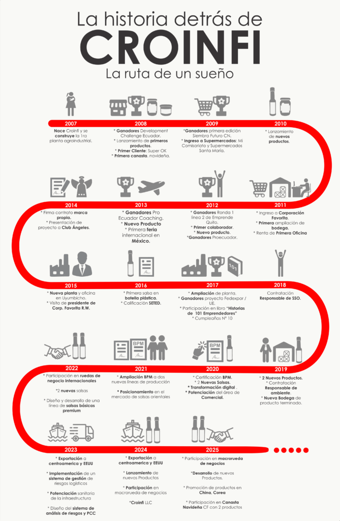En Croinfi Cía. Ltda. somos una empresa ecuatoriana con más de 18 años de experiencia en alimentos agroprocesados. Elaboramos salsas, aderezos, encurtidos y conservas bajo nuestras marcas Guisart® e Hottish®, además de productos marca blanca para importantes cadenas como Supermaxi, Megamaxi y Aki.